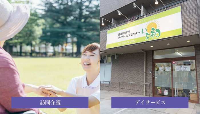 訪問介護事業所では、障害福祉サービス(居宅介護)も行い、日進市、長久手市、名古屋市東部を中心に在宅の方にサービスをご提供しております。また日進市に共生型デイサービスがあり、地域の皆さまに介護を通じて貢献させて頂いております。